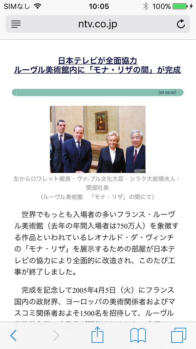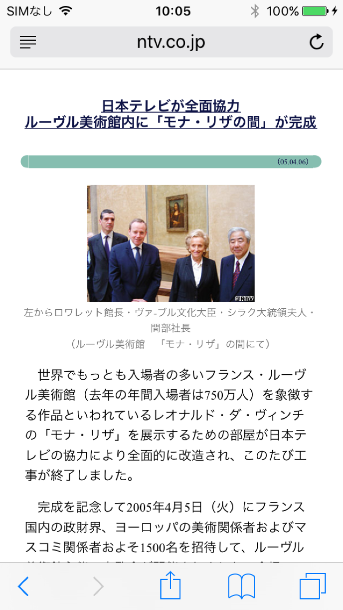 世界でもっとも入場者の多いフランス・ルーヴル美術館(去年の年間入場者は750万人)を象徴する作品といわれているレオナルド・ダ・ヴィンチの「モナ・リザ」を展示するための部屋が日本テレビの協力により全面的に改造され、このたび工事が終了しました。