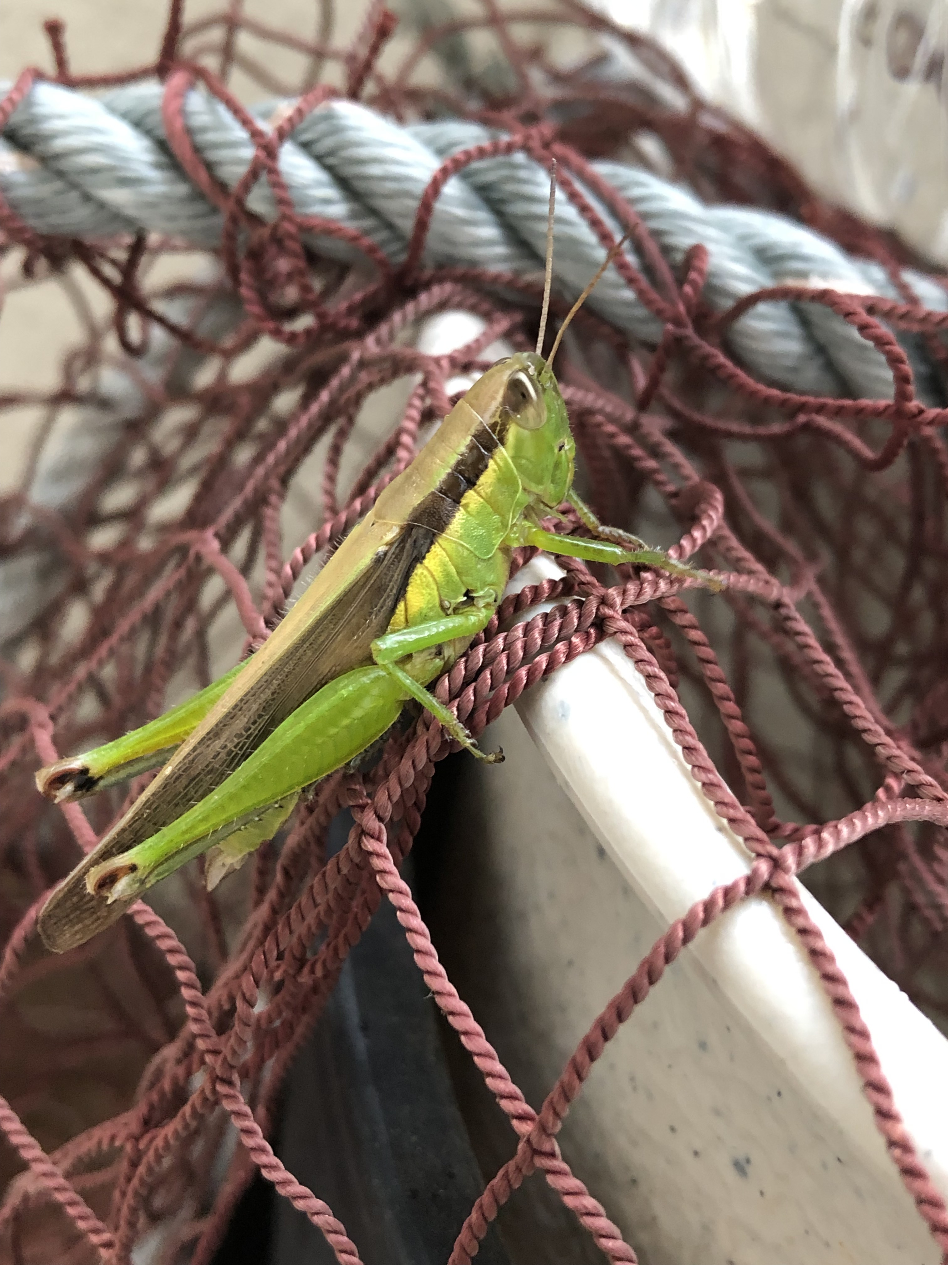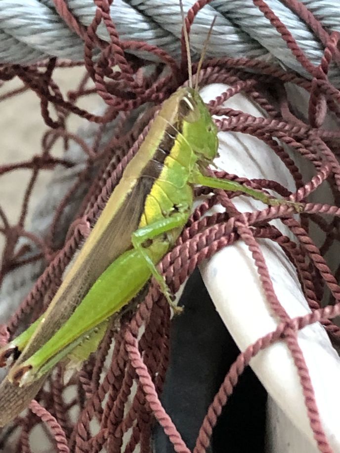ビルの階段の掃除をしていたら、バッタを見つけた。