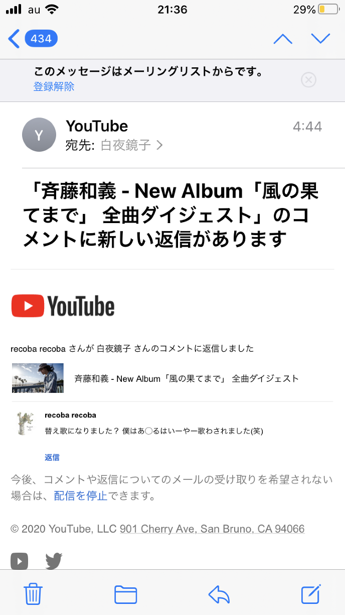 その日から、YouTubeの画像は、コメントが表示されなくなりました。
