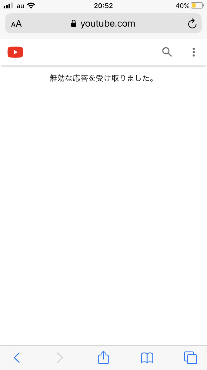 YouTubeは、“無効な応答を受けとりました“ ってなるんです。