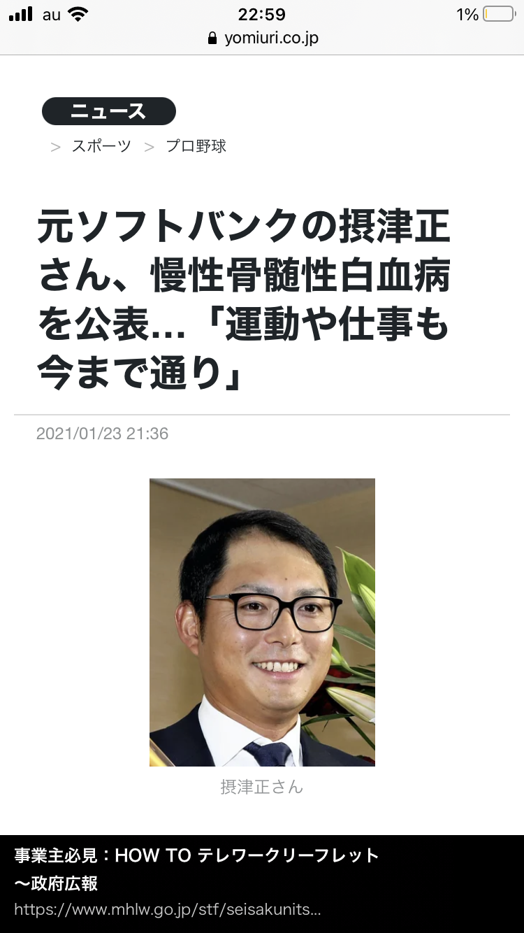 元ソフトバンクフォークスの方が、白血病を公表したとか…