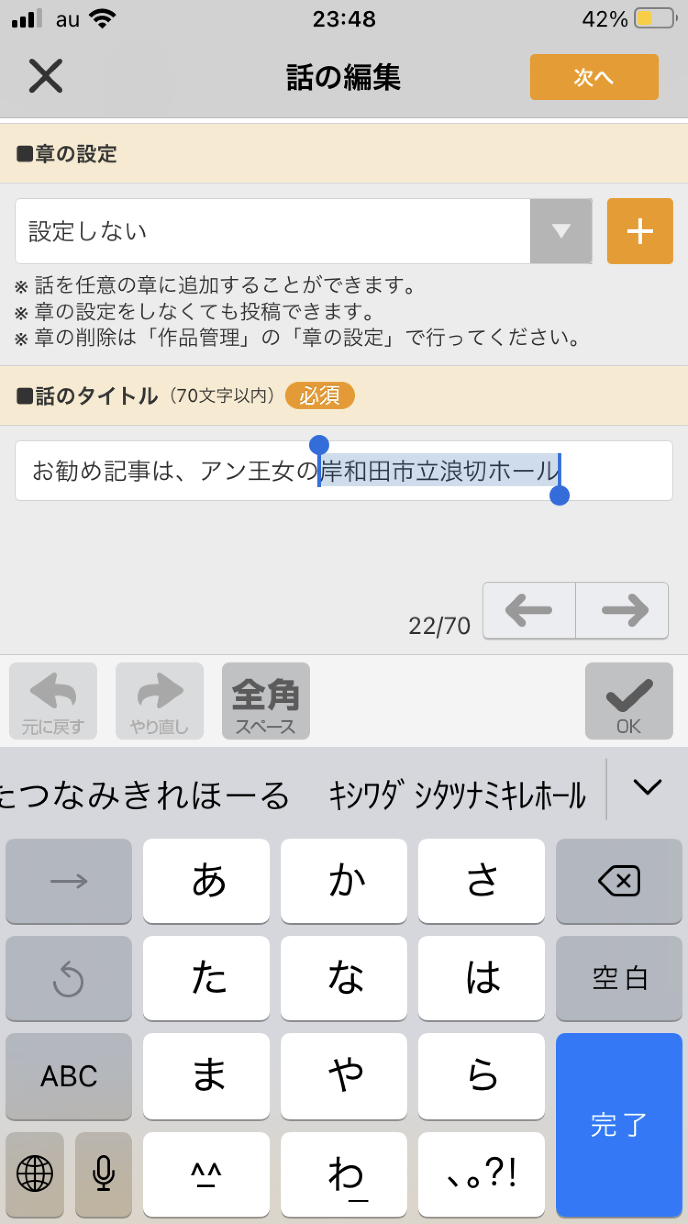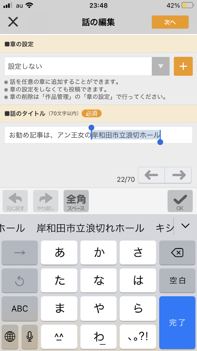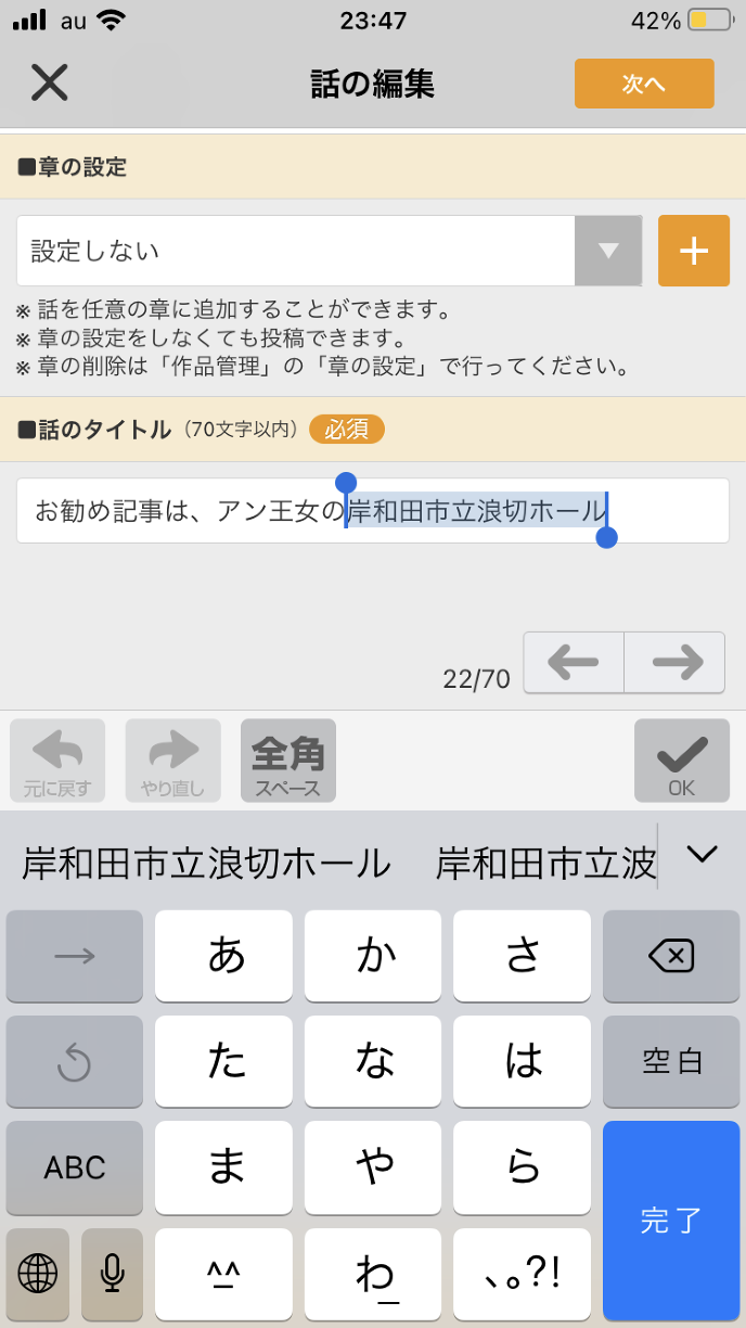 私が、本文をペーストしたら、キーボード画面にその言葉が現れる。