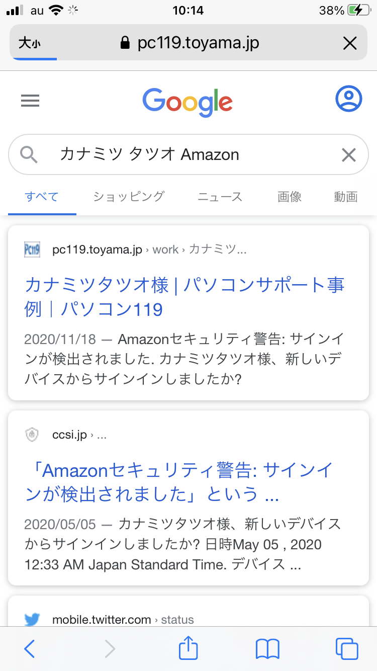 2020/11/18 — Amazonセキュリティ警告: サインインが検出されました. カナミツタツオ様、新しいデバイスからサインインしましたか?