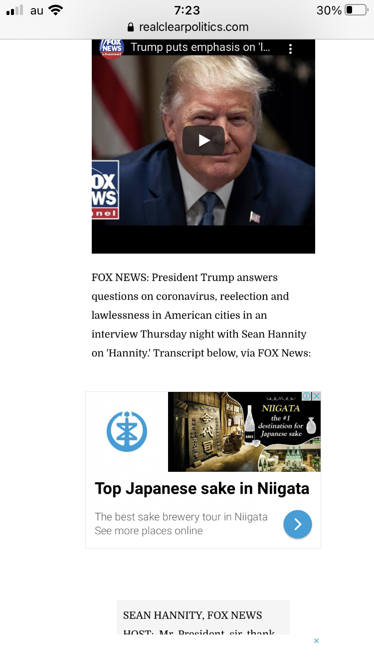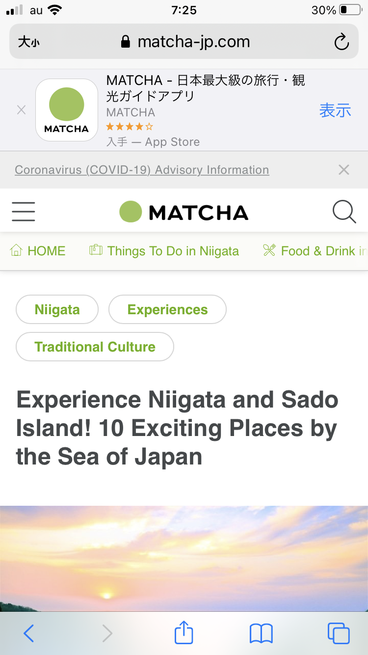 新潟県のお酒のコマーシャルが現れるかと思ったら、日本の観光ガイドのアプリに繋がった。