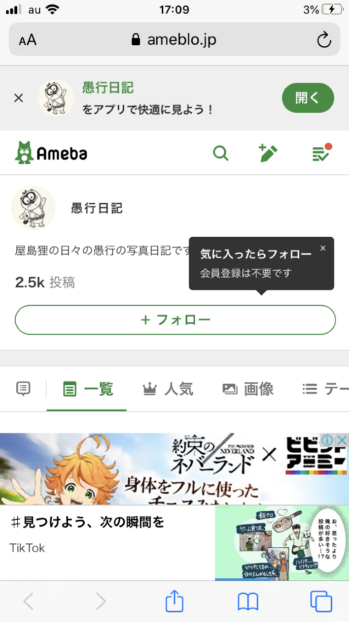 Amebaブログに入ると、ほぼ毎回