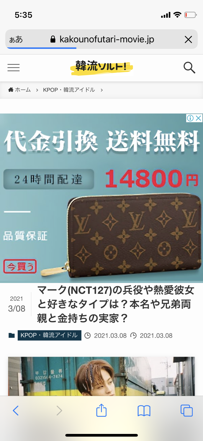 韓国のアイドルの情報を見ていたら、また、ヴィトンの財布の広告を見た。