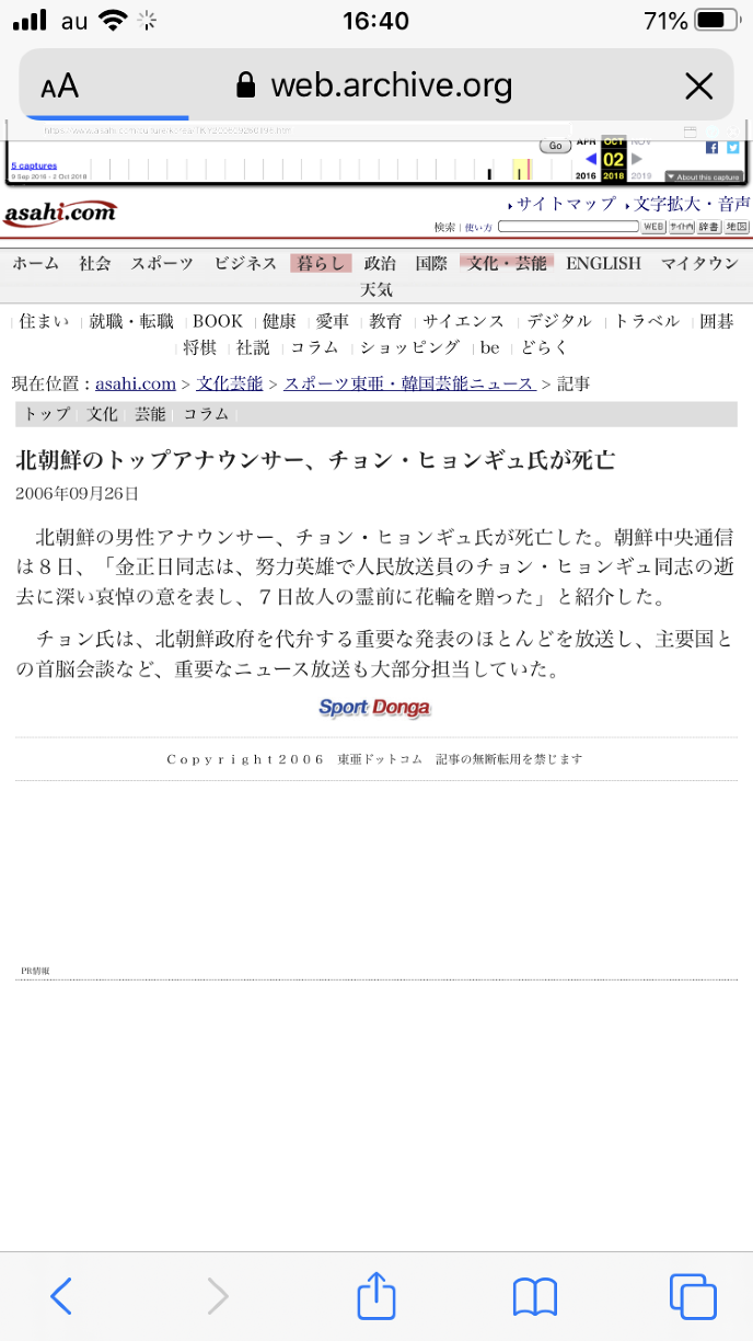 しおりを挟む“北朝鮮のトップアナウンサー、チョン・ヒョンギュ氏が死亡”. 朝日新聞デジタル. 朝日新聞 (2006年9月26日). 2018年4月8日時点のオリジナルよりアーカイブ。2018年4月11日閲覧。