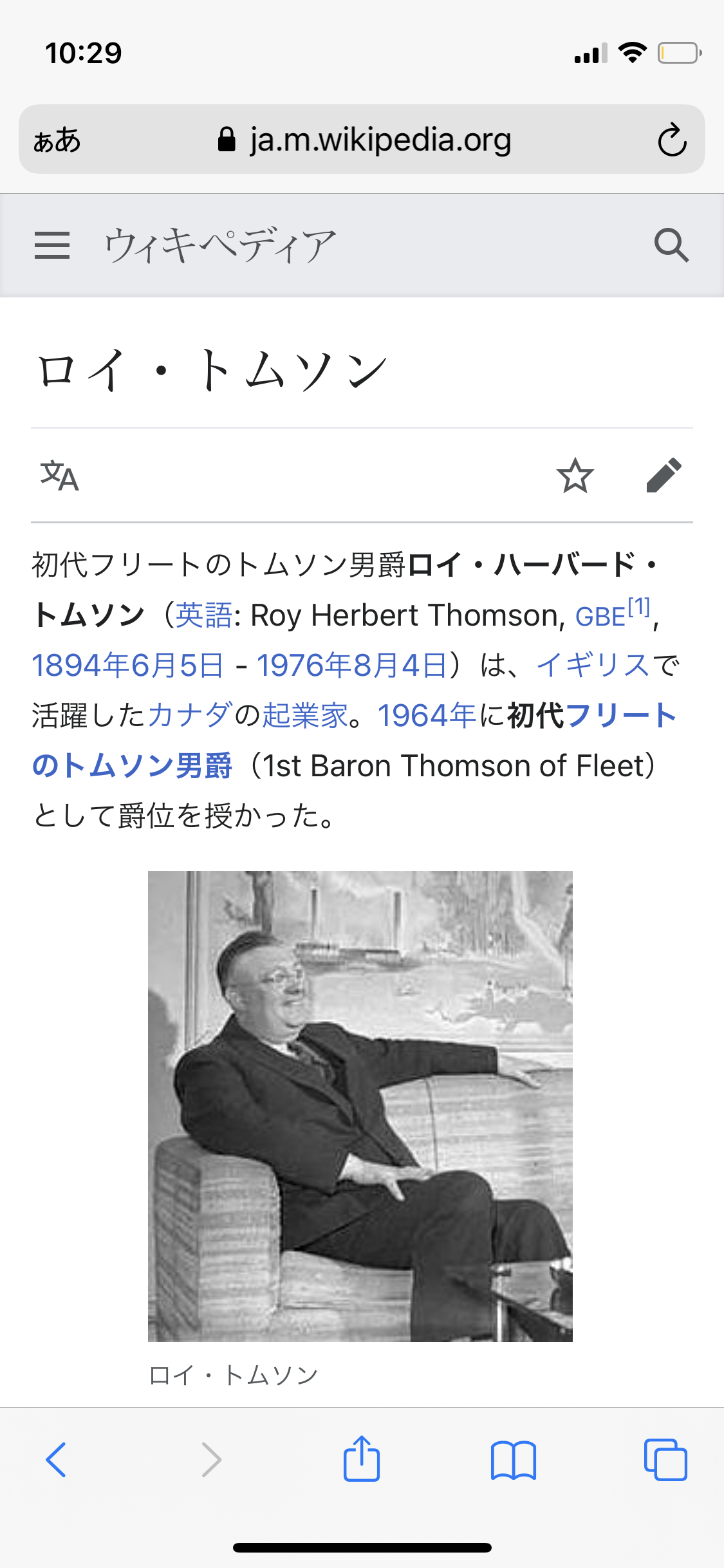 1976年、イギリスのロンドンで没すると、息子のケネス・トムソンがトムソン社の会長に就き、2代目フリートのトムソン男爵として爵位を継承した。