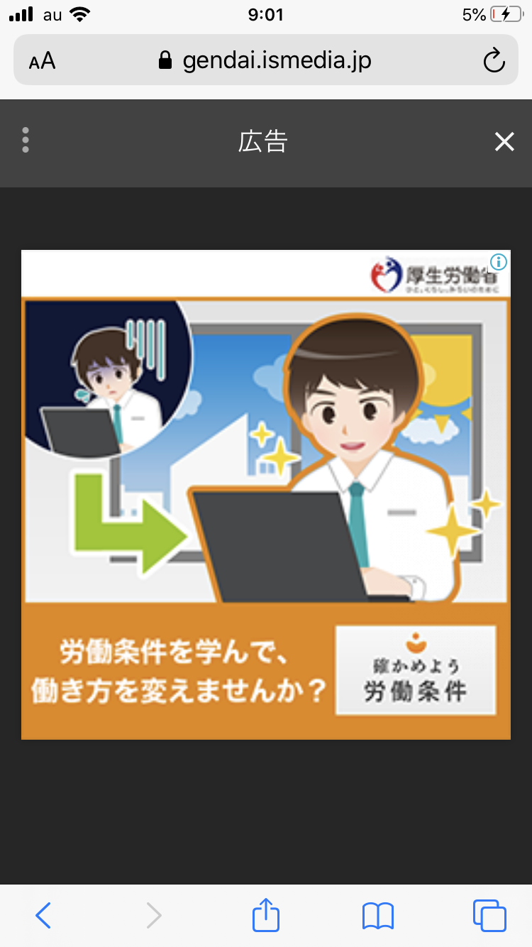 以前は、環境省の広告がよく出ていたけど、最近は、厚生労働省の広告がよく出るようになった。