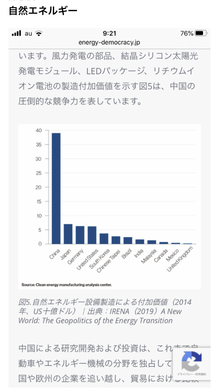 自然エネルギー設備製造で、中国が優位に立った。