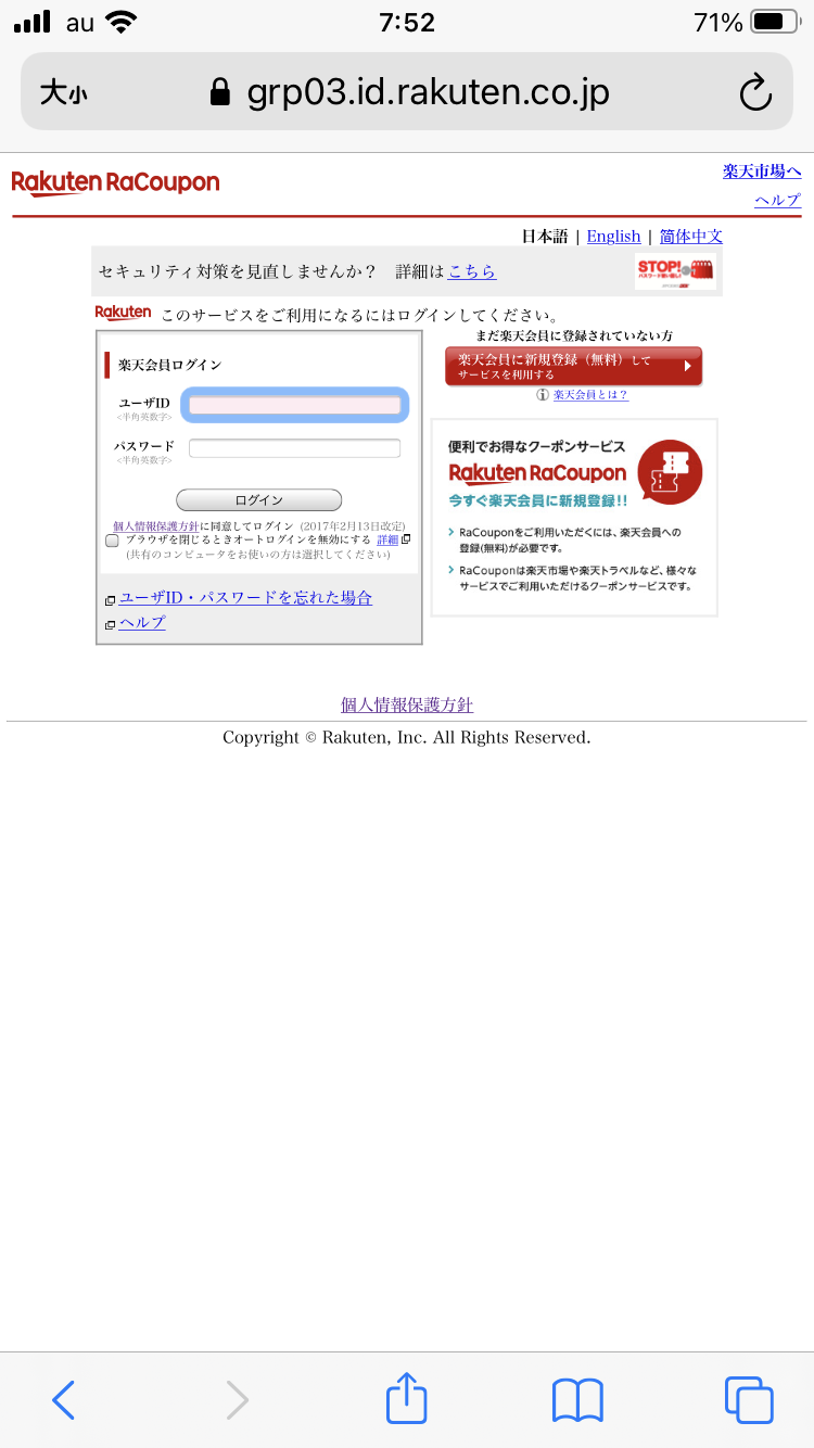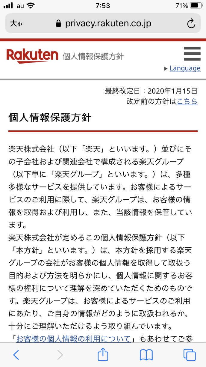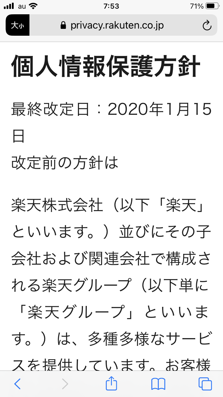 楽天市場の場合、個人情報保護方針のみ、リーダー表示設定になっています。
