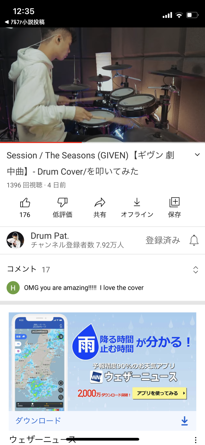 ドラムを叩く見知らぬ人の動画から…