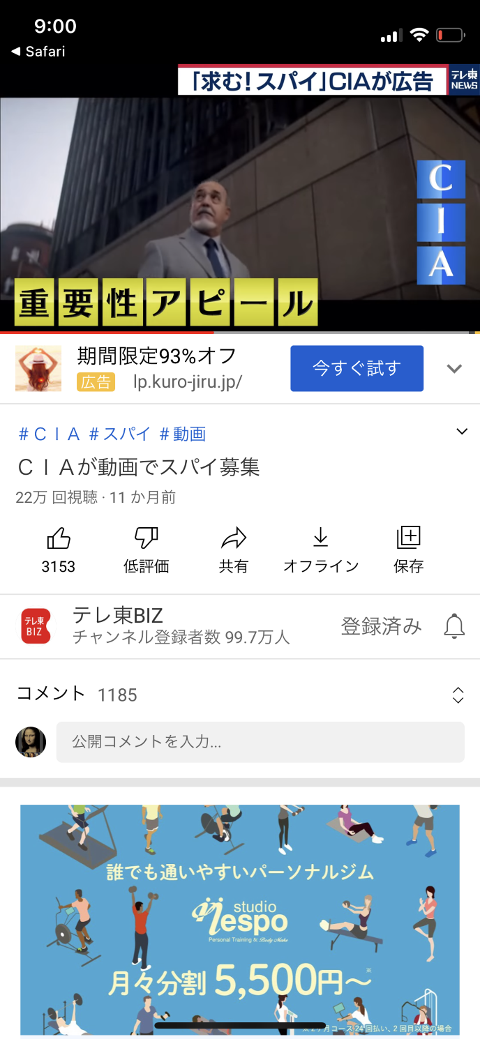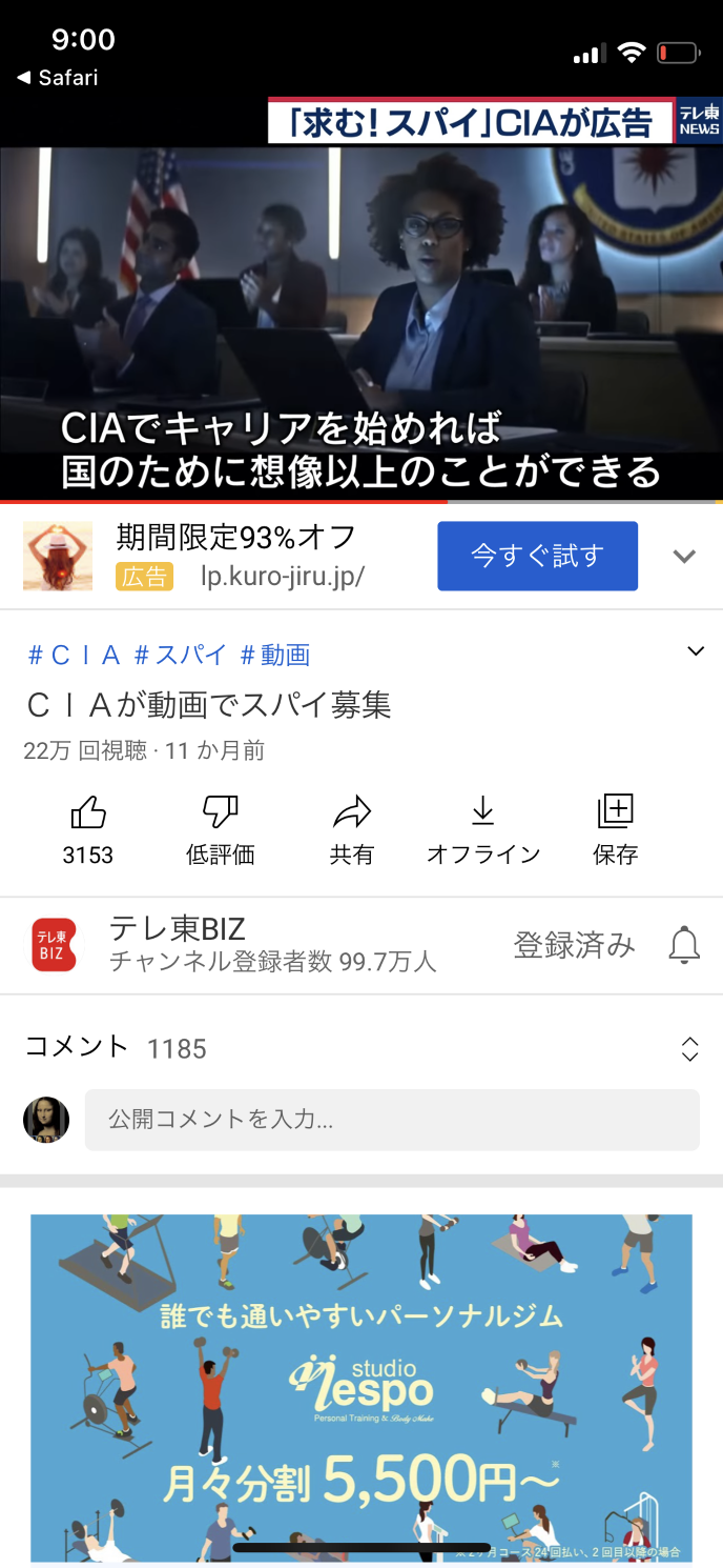 C I Aがスパイを募集しているという内容の動画を観ていました。