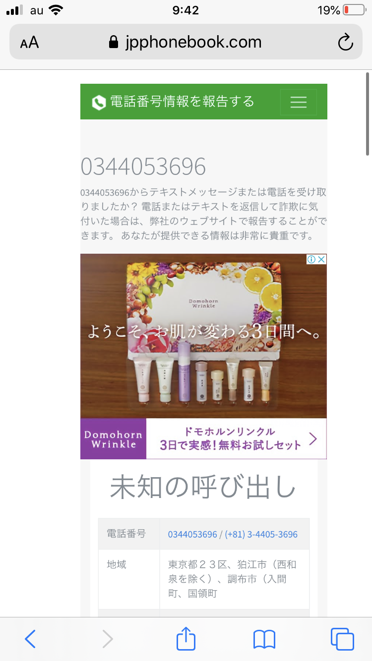 0344053696からテキストメッセージまたは電話を受け取りましたか?