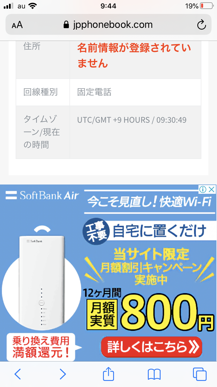 SoftBank Air の広告が出現。