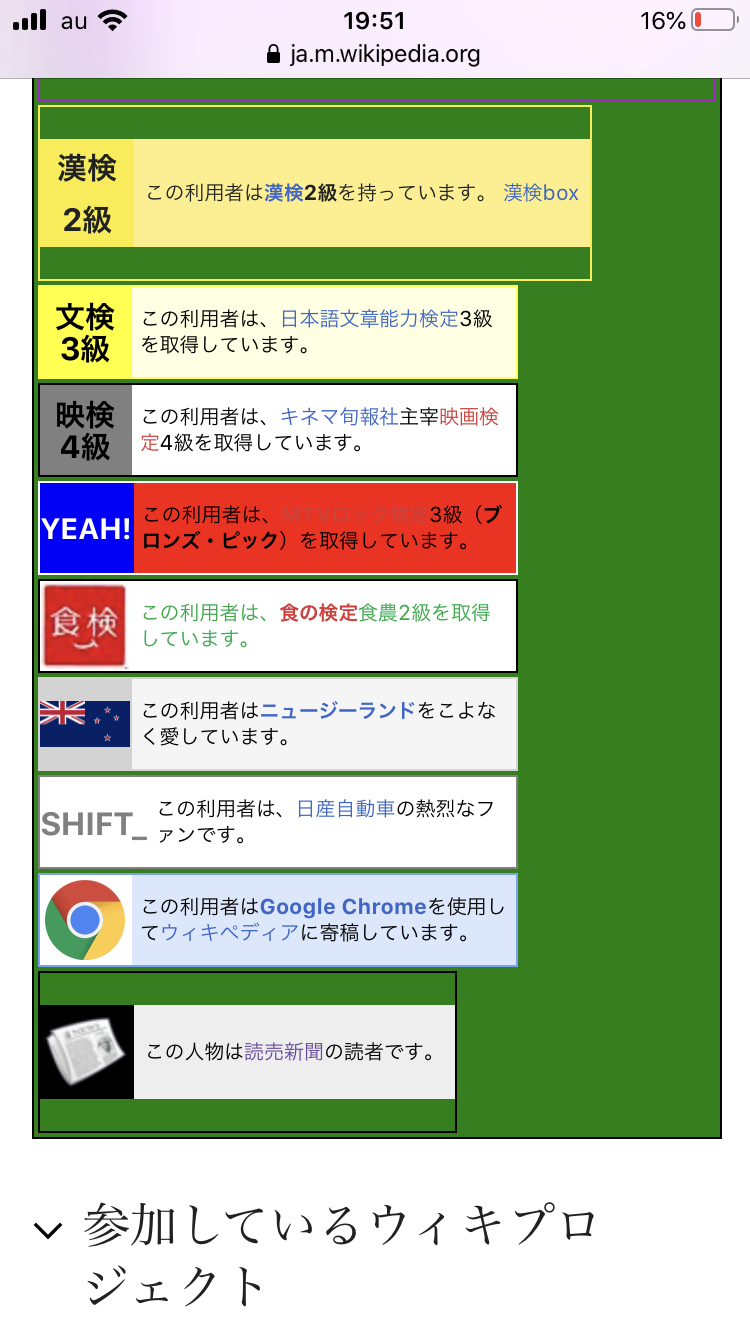 ウィキペディアンのユーザ情報
