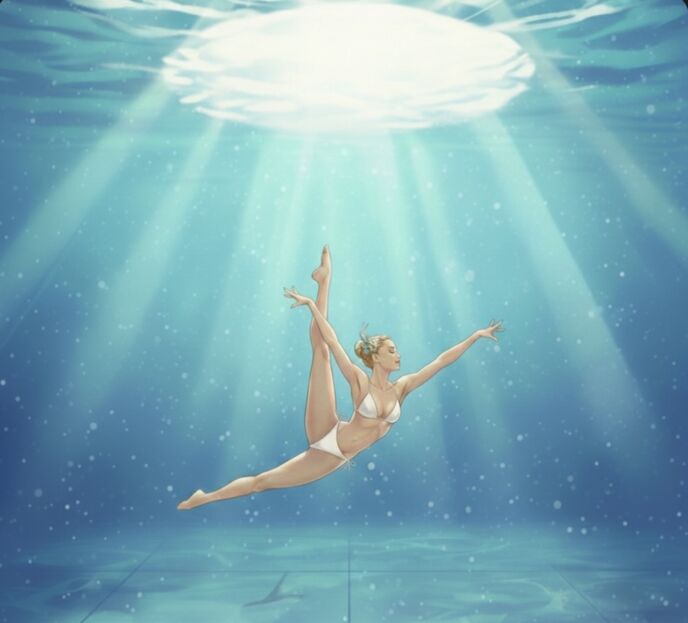 その瞬間、彼女は激しく身悶えし、水中で声なき叫びを上げた。全身を駆け抜ける絶頂の波。