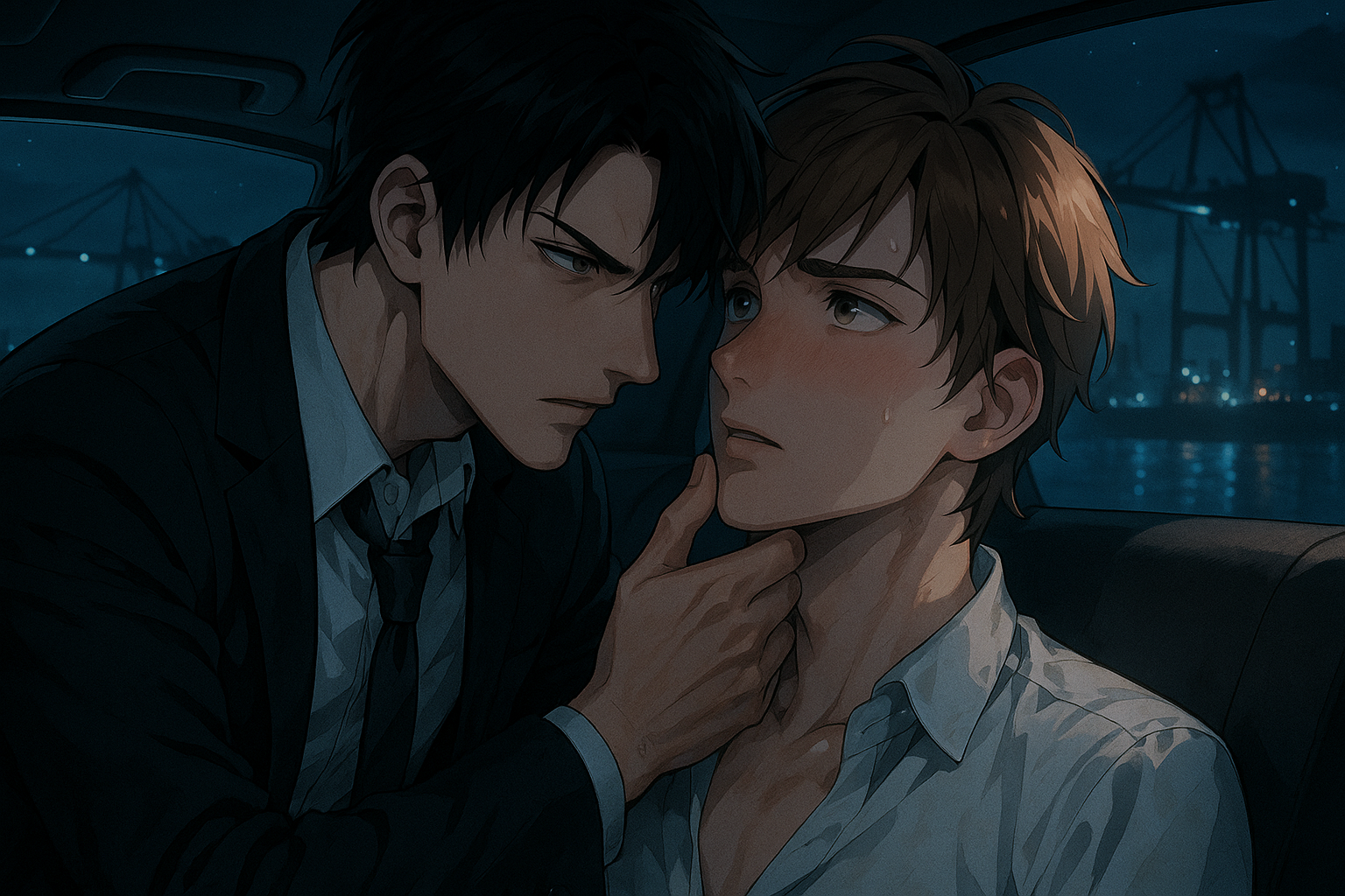 スーツの前を乱され、シャツのボタンが弾け飛ぶ。狭い車内に潮の冷気が流れ込み、羞恥と熱がないまぜになって全身を包んだ。