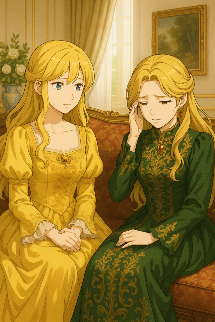 磨き上げられた床は燭台の光を反射し、色とりどりのドレスが揺れるたびに、まるで花畑が動いているかのように見える。貴族たちの笑い声、楽団の優雅な旋律、そして、ひそやかな噂話が、空気を満たしていた。