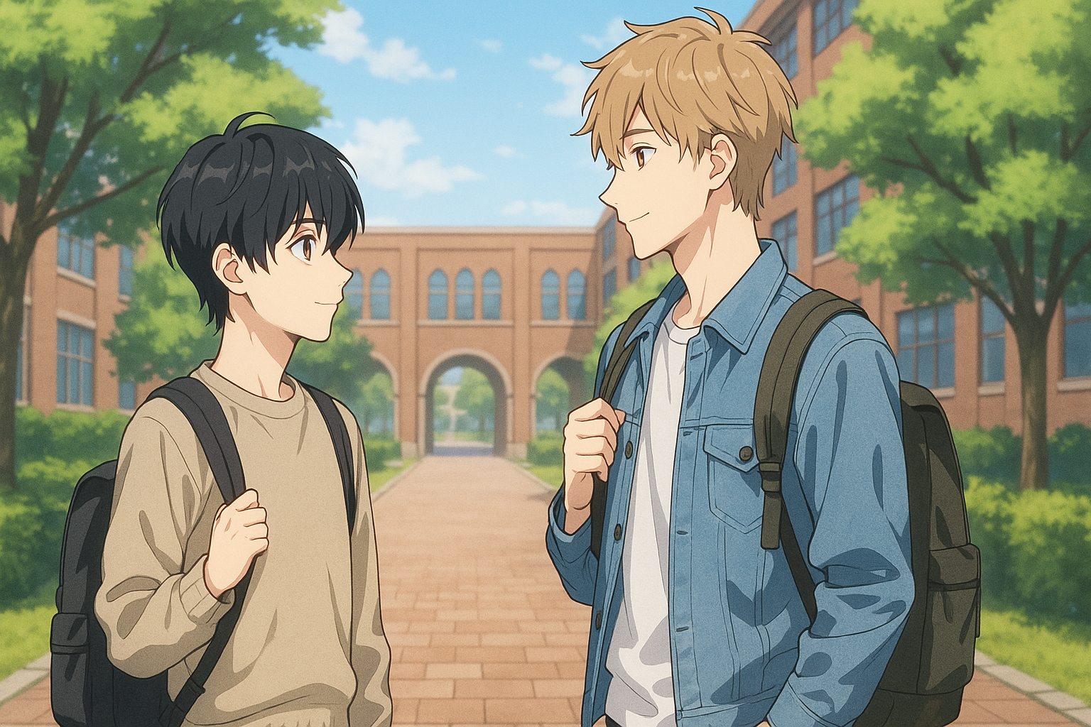 大学の教室。昼下がりの光が差し込み、窓はいつもより澄んで見えた。前の席に座る朝倉陽真の背中は、ほんの数メートル先にあるのに、湊には遠く感じられる。昨日の出来事が、その距離を隔てていた。