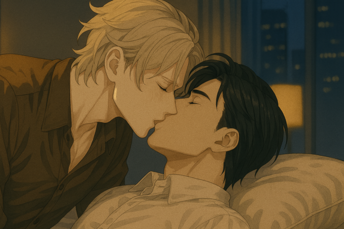 浅い口づけでは足りない。夜の底に沈むほど深く、互いを探す。コートが床に落ちる音、シャツのボタンが少し跳ねる音、息が擦れる音——それら全部が、同じひとつの旋律に変わっていく。
