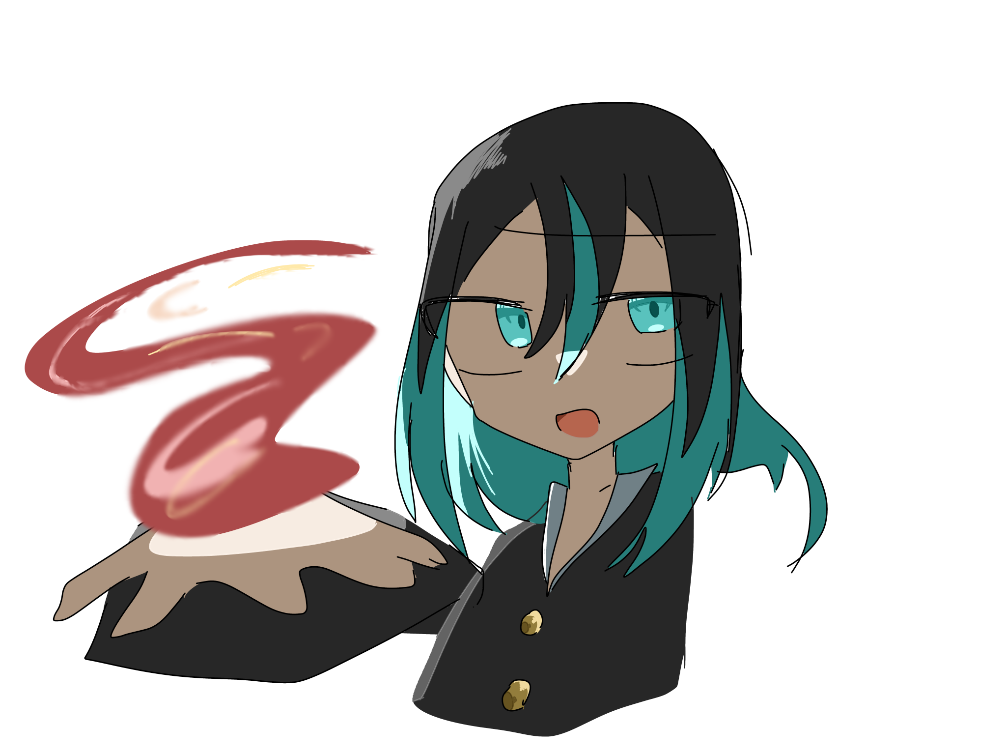 真面目だが強気で、どこか挑発的な笑みを浮かべる青年。