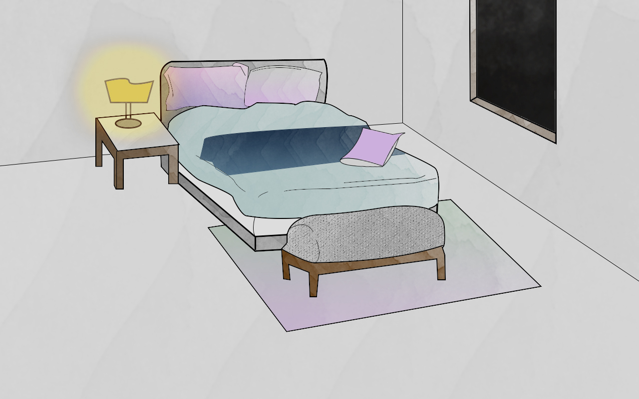 パニック状態になりながら、ベッド近くの電気スタンドに手を伸ばし明かりを点ける。