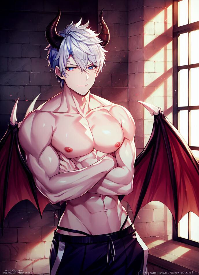 白い髪の毛に青白い目、筋肉質な腕と、鱗だらけの両足。