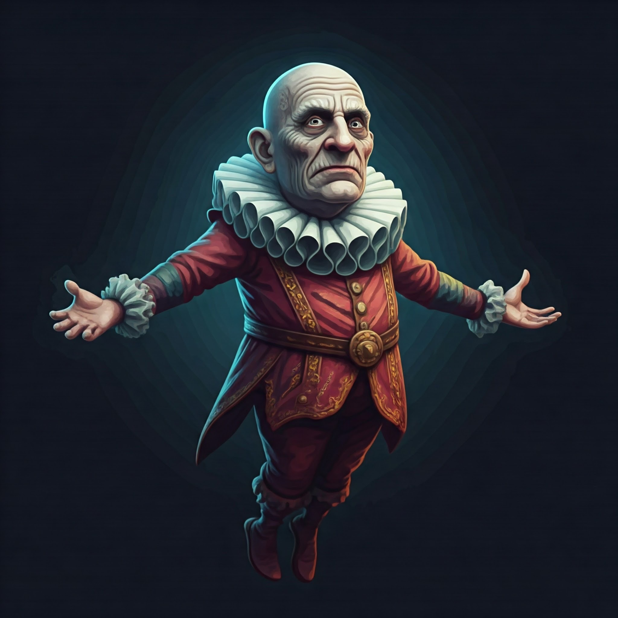 次に現れたのは、まるで幽霊のように青白い顔をしたスピリットジョージ。彼は手を広げ、空中をフワフワと浮いている。