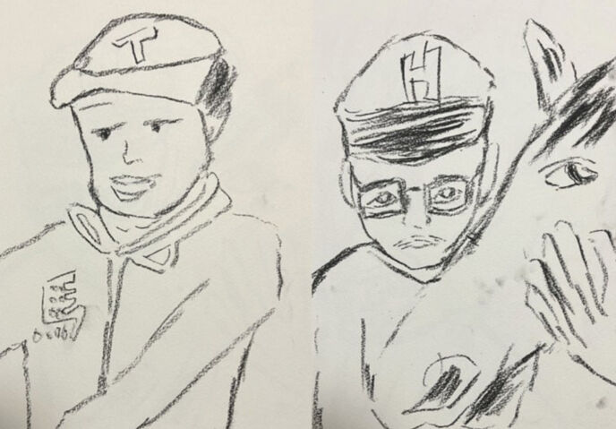 調教師のHと厩務員のタケルが会話をしている