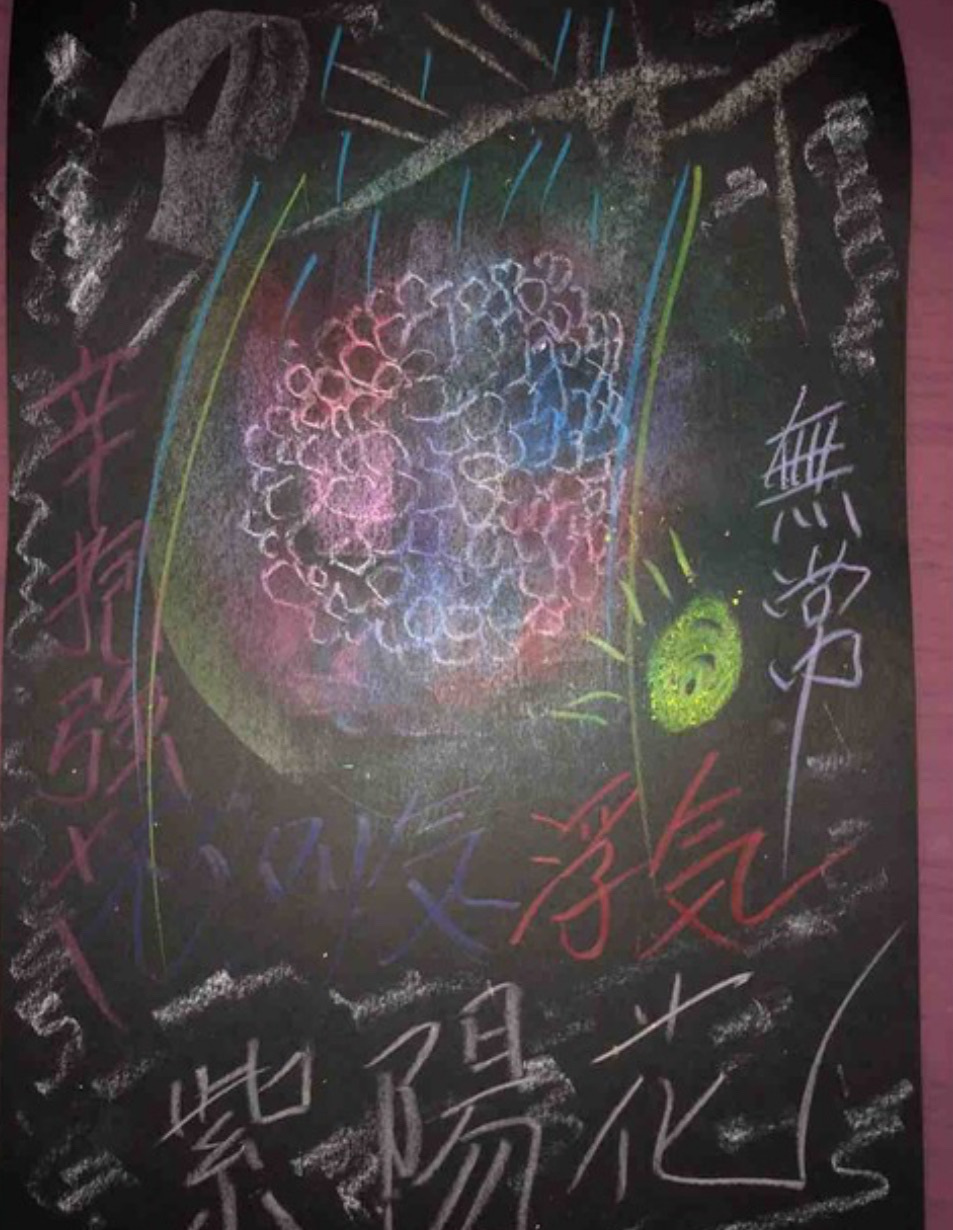 道咲く紫陽花に見つめらながら今日も出勤した。メルメのスニーカーは雨と闇で黒みがかった
