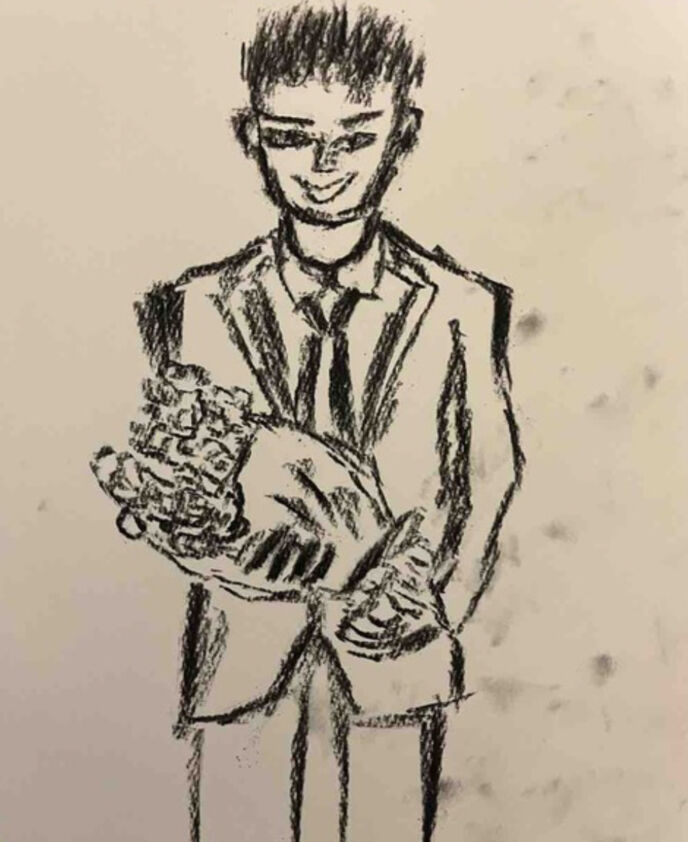 彼からあの人は薔薇の花を抱えていたと聞かされました