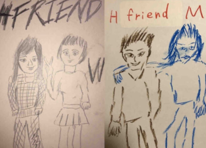 いつしか女子2人は右を向いて、男子2人は左を向いた