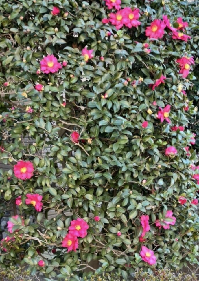 、椿が植栽されていて目をやると麗しい花が赤を主張している