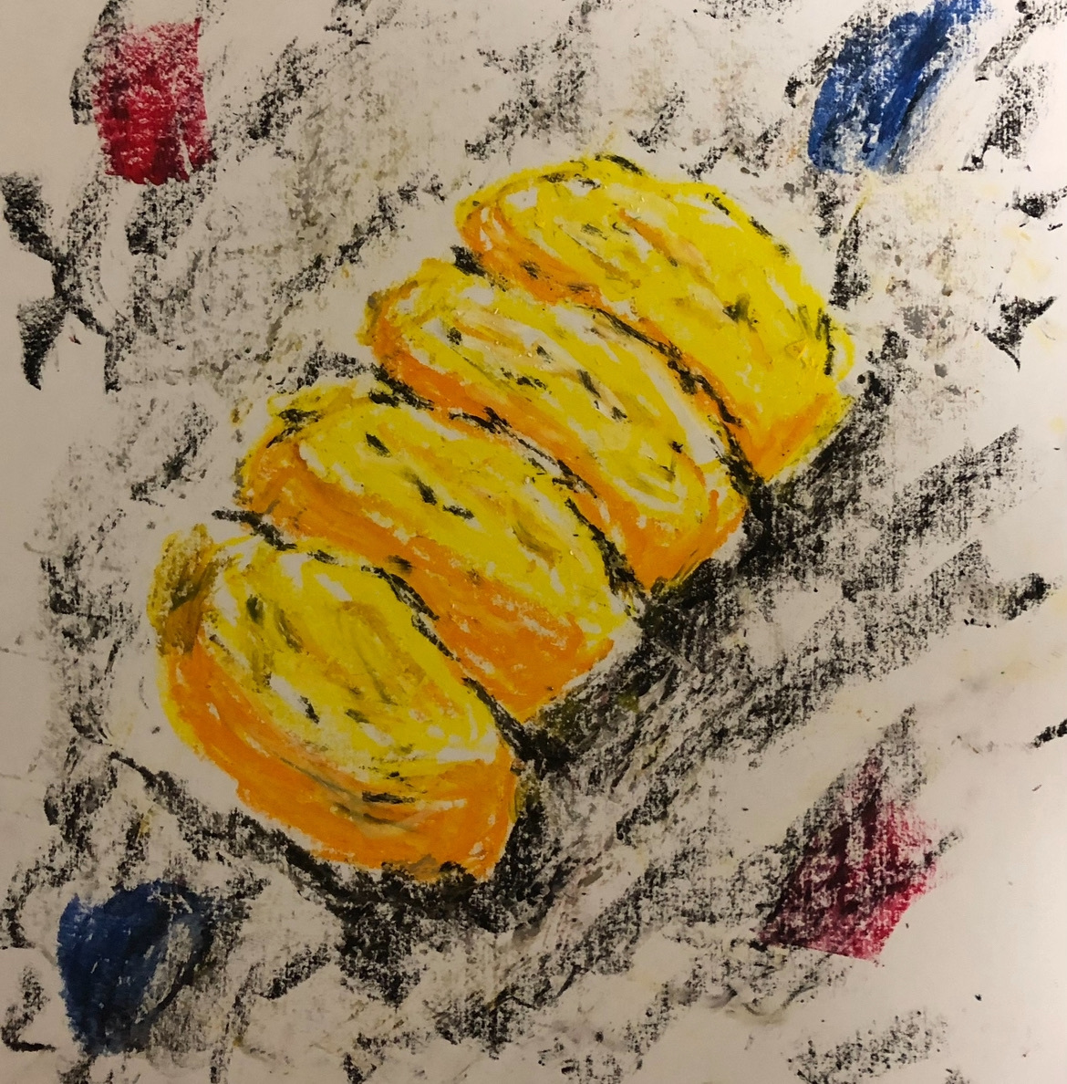 学園鞄からサンドウィッチと昆布のおにぎりを出した