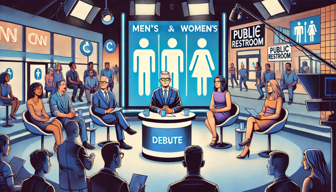 ある日、人気のある討論番組「社会の目」が性別にまつわる問題をテーマに取り上げました。今回の議題は、最近社会的に注目を集めている「性転換パンストを履いて男子トイレを使う女性」というテーマです。スタジオには多様な立場のパネリストが集まり、この問題について議論が展開されました。
