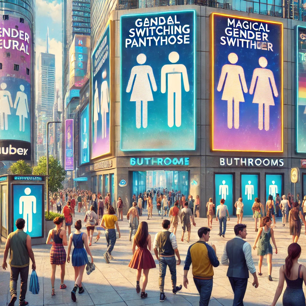 性転換パンストが発明されてから、世界は大きく変わった。それまでのジェンダーの概念は一変し、誰もが自由に性別を変えることができる「ジェンダーレス社会」が実現した。