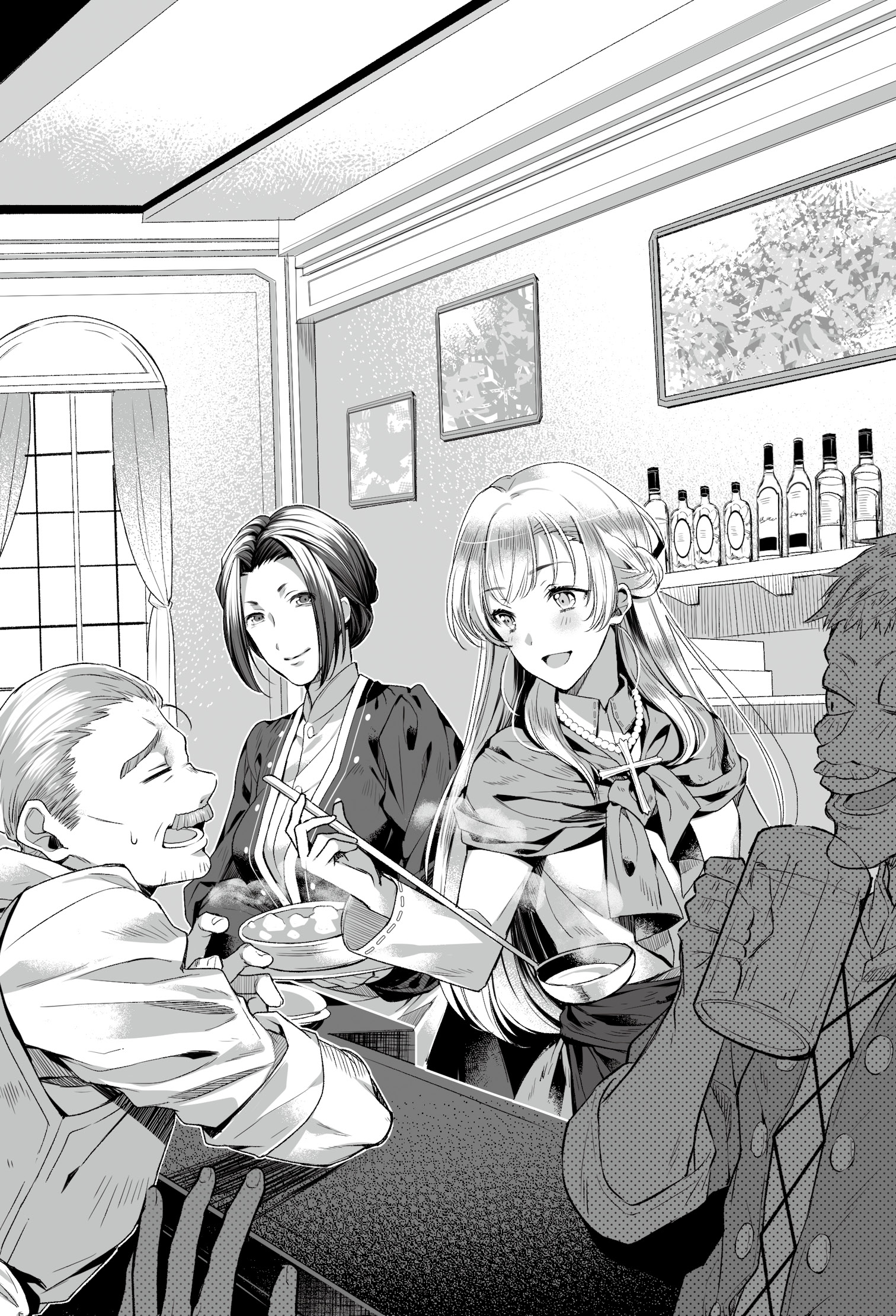 セラフィナは一瞬中に入るのに躊躇したが、有無を言わさずエリナーに腕を引っ張られてしまった。カウンター内の厨房に押し込まれるなり、湯気の立つスープとコップを渡される。