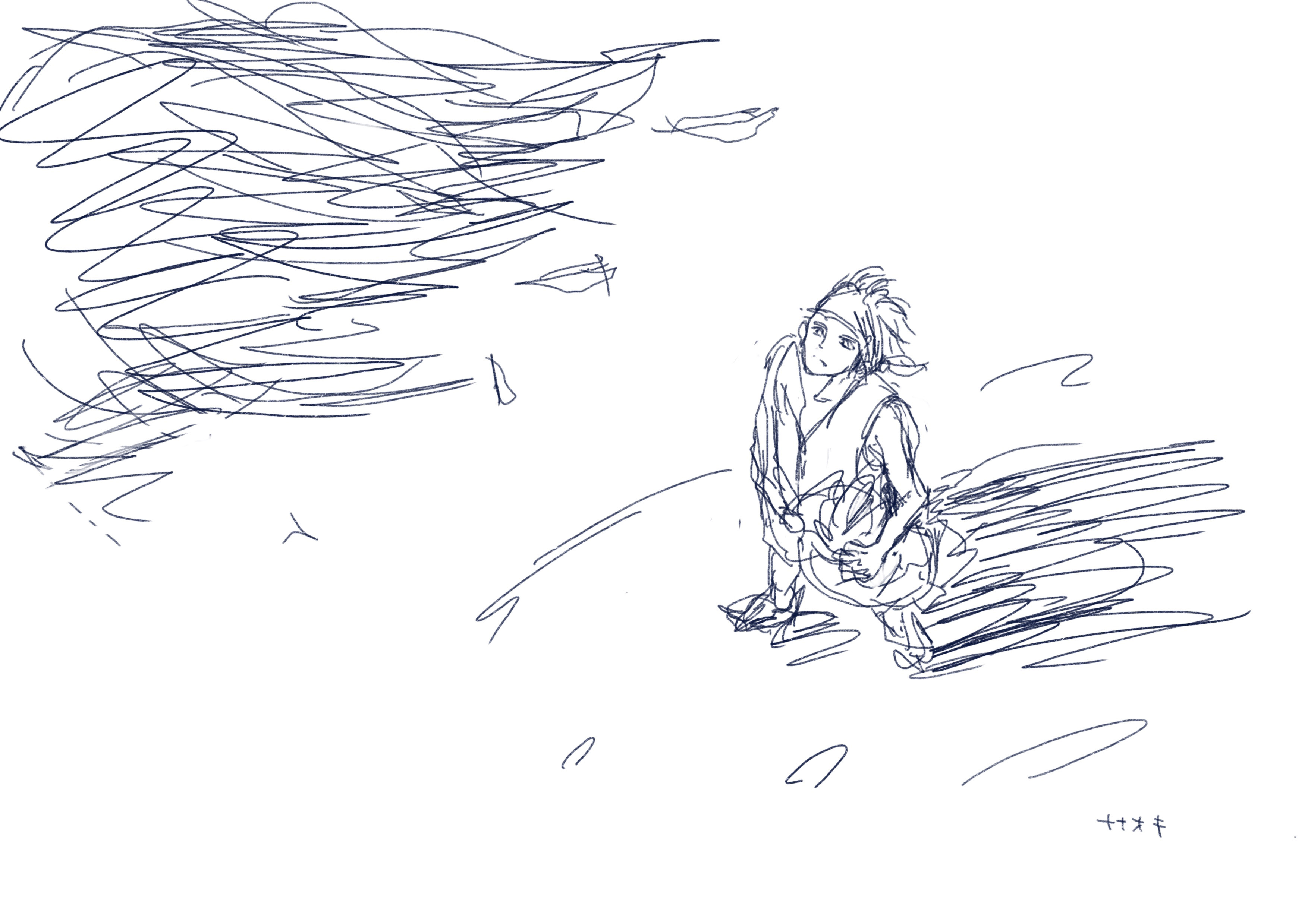 集落の何人かの人間とともに畑作業をしていたゴナンも、はっきりとその鳥の姿を見た。思わず凝視したのは、その鳥がとてつもなく大きかったからだけではない。その背に、人が乗っているように見えたのだ。小柄な、少女? ほんの一瞬だったが、何となくあのシルエットは忘れないような気がした。あっという間に飛び去り、数秒後には豆粒のように小さくなって消えていった。