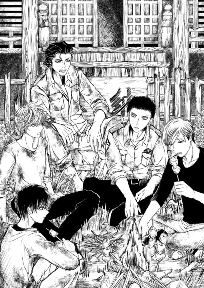 焚火の横では、寛人と渥美がビニールシートの上で蛙を解体していた。四肢を外し、骨から肉を削いでゆく。大きさが大きさなものだから、切っても切っても終わりが見えない。