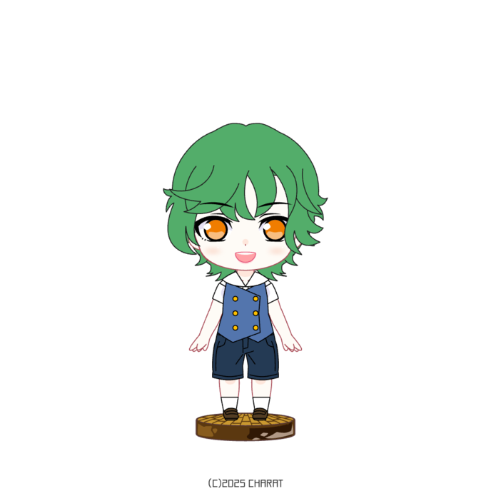 見た目:男性:緑フワ髪オレンジ目将来はイケメンになりそう