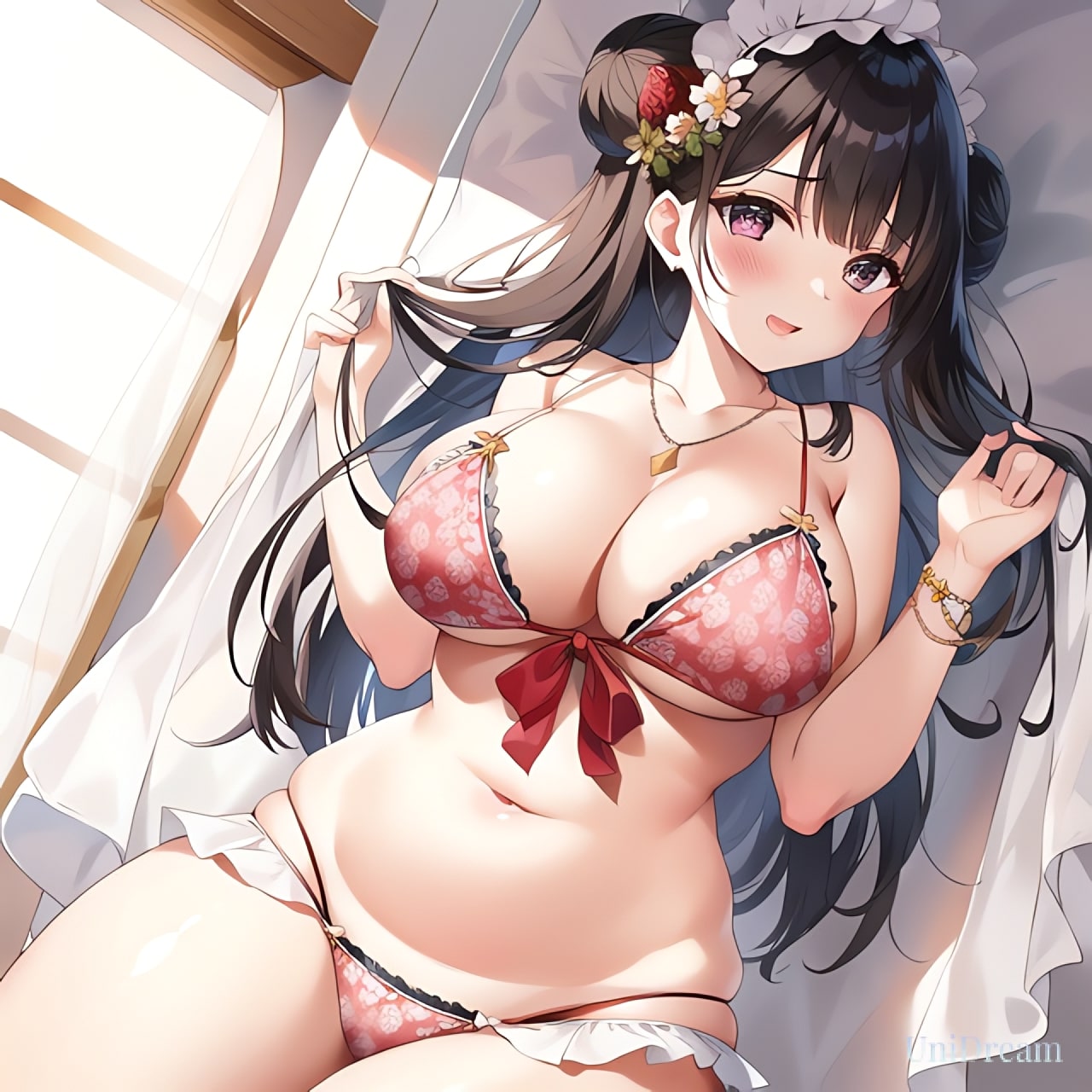 積極的に妖艶でむちむちな身体で密着しまくって、誘惑もしまくる小悪魔でたまらなくてワンチャン入りそうになっちゃうけど、なんとか我慢して寝室からお姫様抱っこで移動させてもらう想里愛ちゃん。