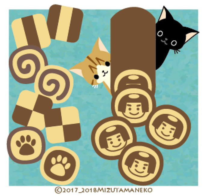 あらら、市松模様や渦巻き模様に混じって、金太郎飴模様のクッキーもあるよ。