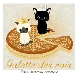 ガレット・デ・ロワは、王様の焼き菓子の意味だから、当然、シャムミックスのお姫様と黒猫の王子様がお当番。