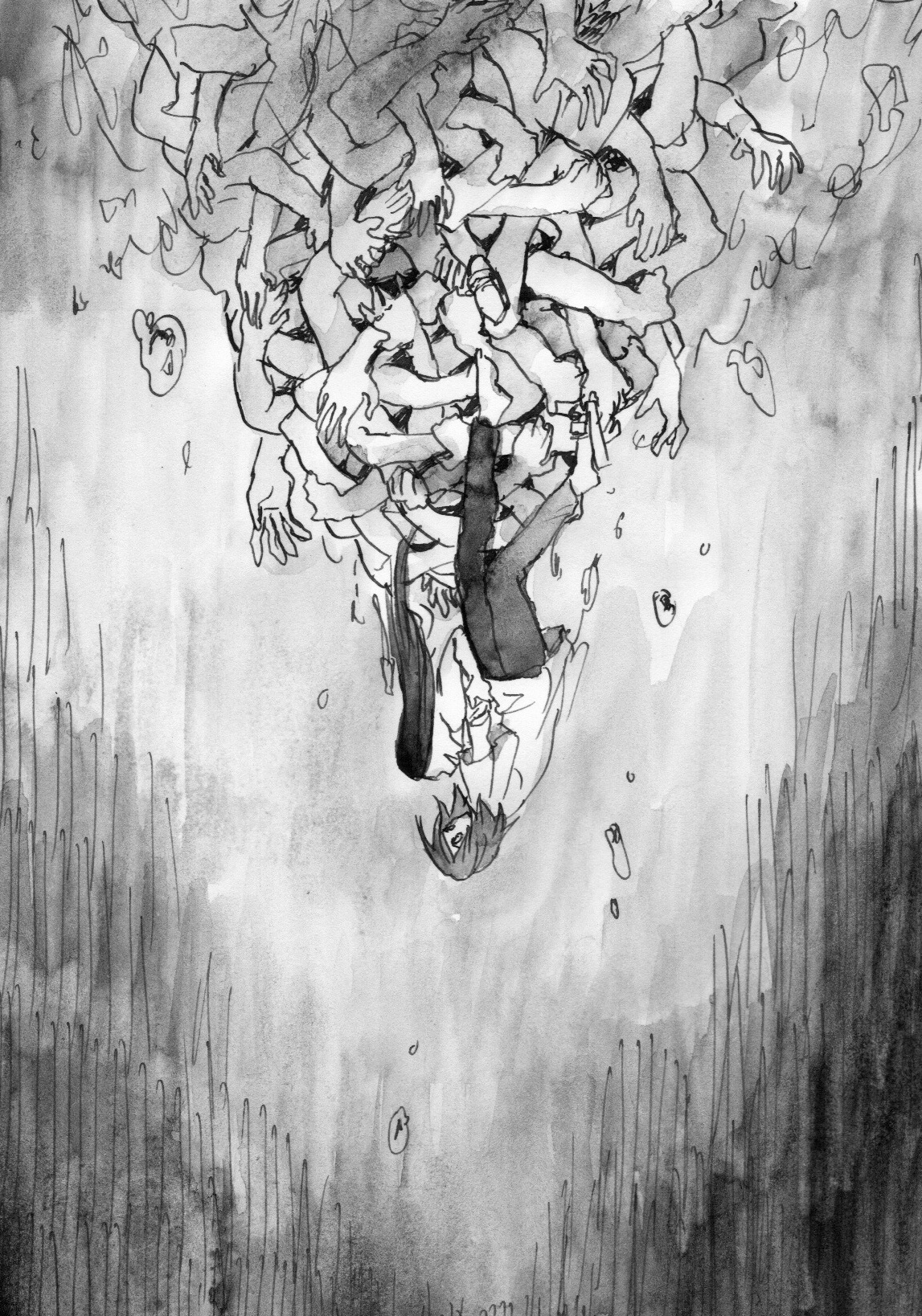 そう思った矢先、周りの水はうっすらと消え去り、息はできるようになったが、代わりに緩やかに空中を落下している感覚が襲う。