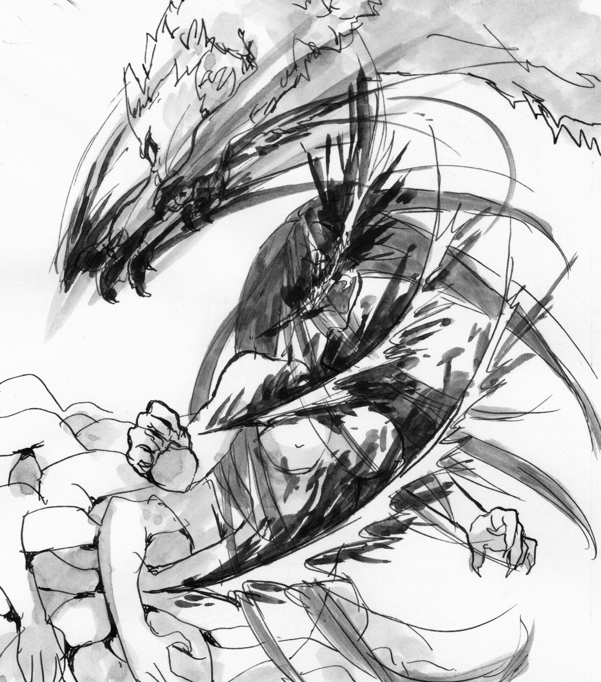化け物の先端。壁にぶつかる寸前に作ったのだろうか、卵の殻のように無数の腕が先端の身体を守っていた。スルスルと解けると、女の顔は憤りでひどく歪んでいた。