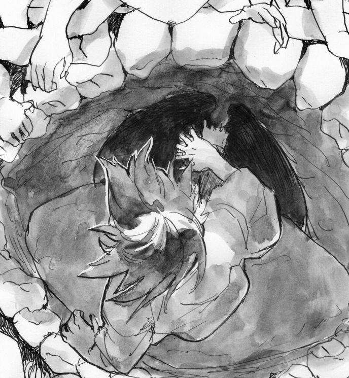 化け物は高らかに笑い声をあげた。無数の手が、朔の身体を引き寄せていく。