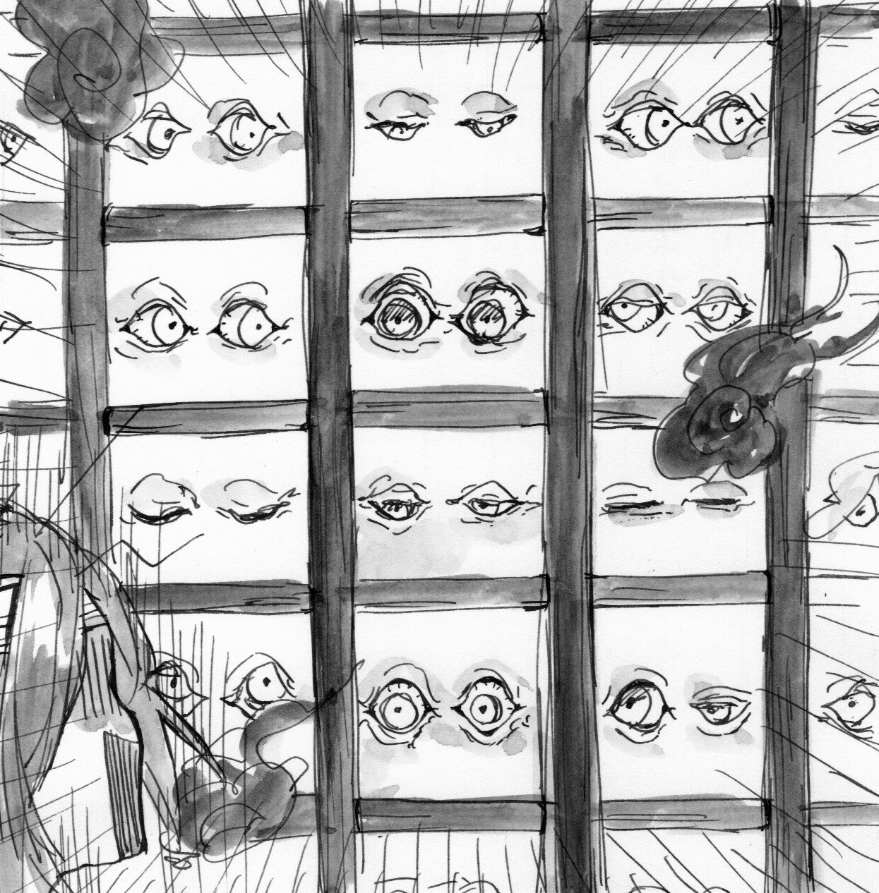 のっぺりとした声がしたと思えば、ギョロリ、と。障子にいくつもの目が現れた。