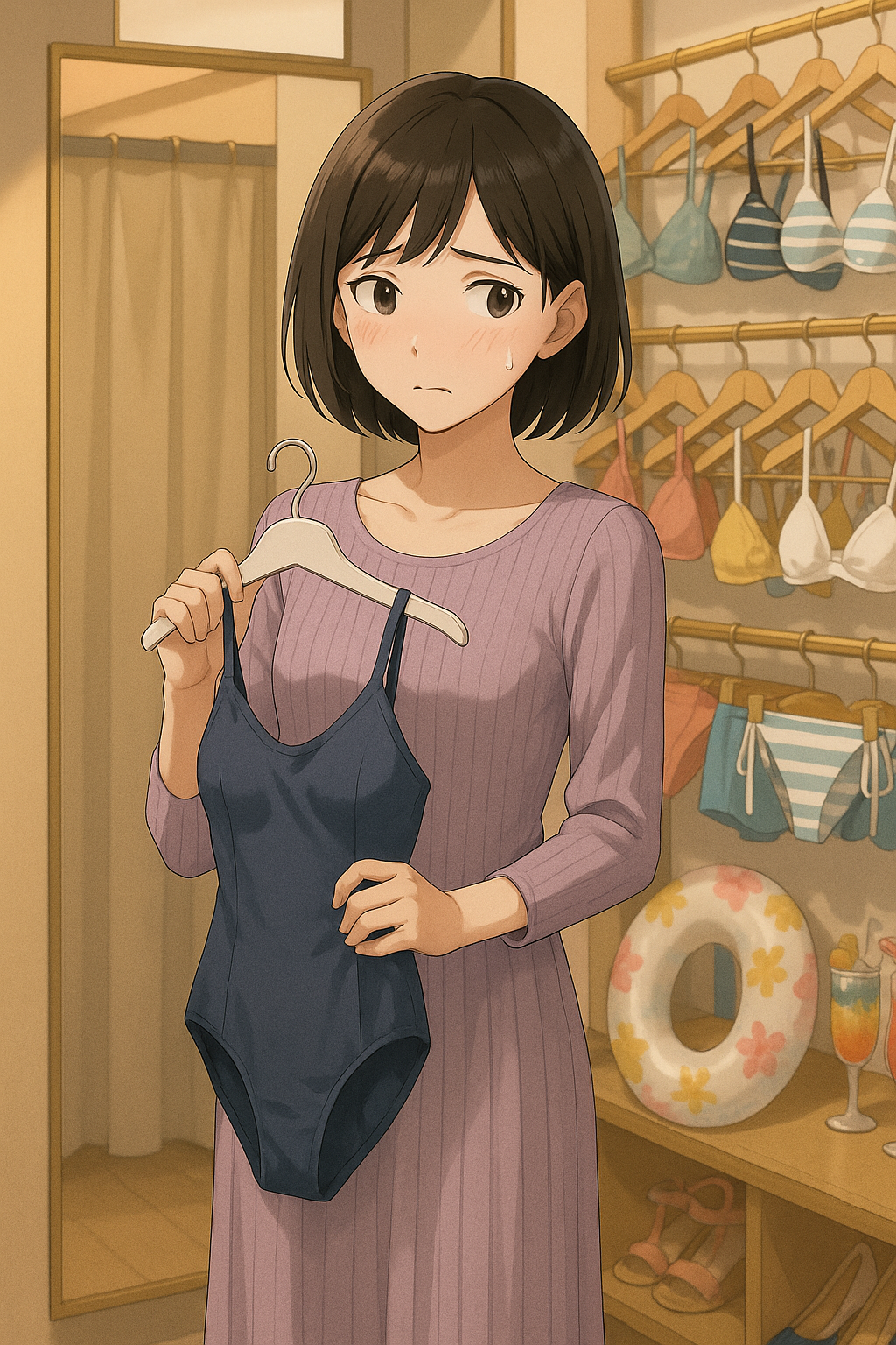 (なおスタイル……女の子の格好で、水着……)
