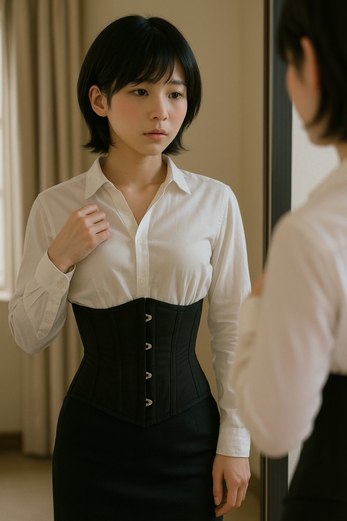 なおは、ブラウスとフレアスカート、そしてコルセットを身につけたまま、ベッドの上に座っていた。